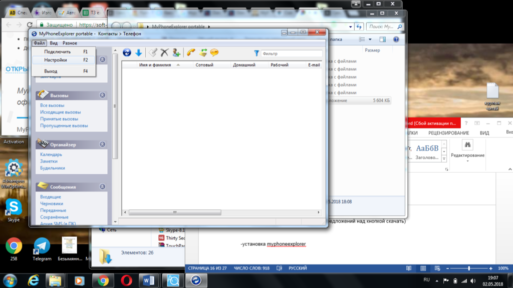 Приложение МайФонЭксплоуер синхронизацию данных между устройствами на платформе OS Windows и OS Android. Также можно пользоваться функциями телефона дистанционно.