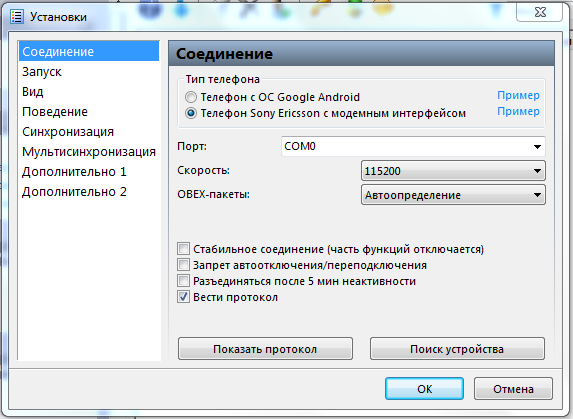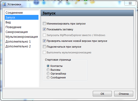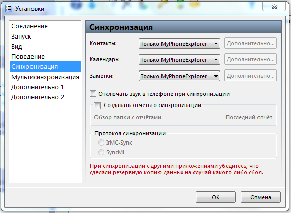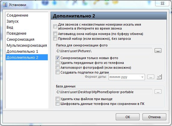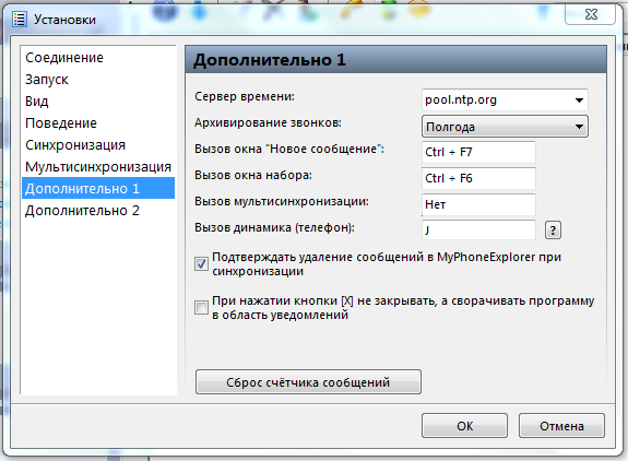 Настройка MyPhoneExplorer