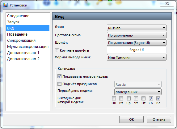 Язык интерфейса, шрифт, цветовая схема можно изменить в разделе «Вид».